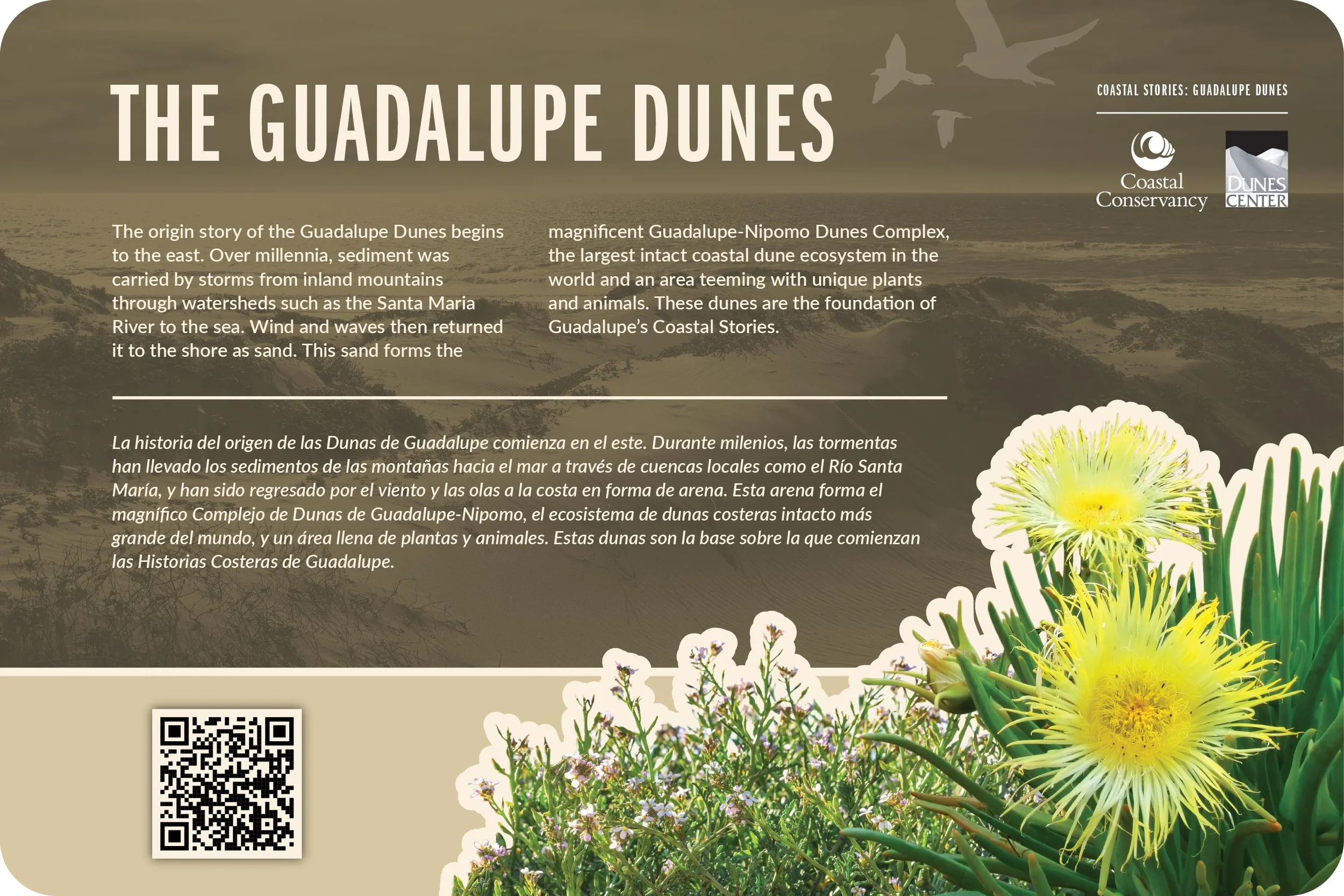 The project focused on providing opportunities for the community’s underrepresented voices to be heard – their stories and their connection to the Dunes and the City of Guadalupe now have a platform. This was done through a new historical mural by local artist Colleen Gnos, a documentary film by local director, Chachi Ramirez, and six interpretive signs located throughout the city by local graphic designer Andrea Rockwell. Through their combined efforts, the quiet voices from the past all the way to the present now have a new opportunity to be shared with the wider community.